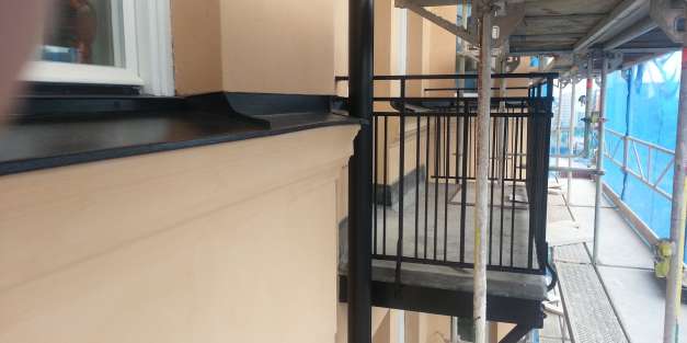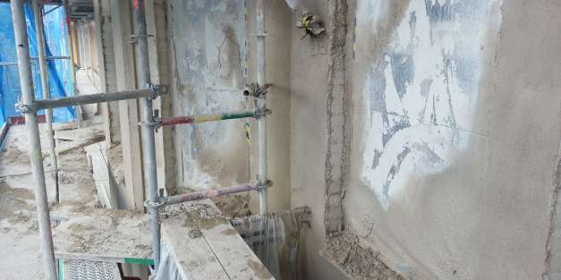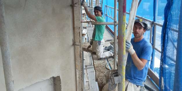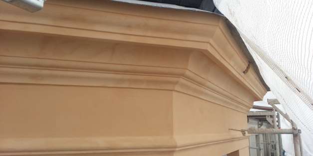 Bortfräsning av felaktig ytputs. Lapp och lag av underliggande samt ny ytputs som avfärgas med gotlandskalk. Renovering och målning av alla fönster, smide mm. När ställningar byggts och man kunde göra en noggrannare kontroll av putsens kondition beslöts att bila ner allt. Så det blev en hel omputsning istället.