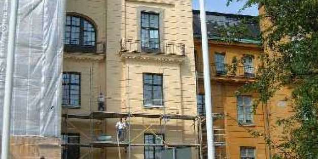 Generalentreprenad, hel nerbilning och omputsning med receptblandat hydrauliskt kalkbruk, avfärgning med traditionell kalkfärg.Renoverings och konservatorsarbeten av all sten på fasaden.Fönsterrenoverng, målnings, smides, plåtarbeten etc.