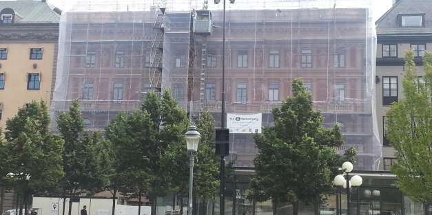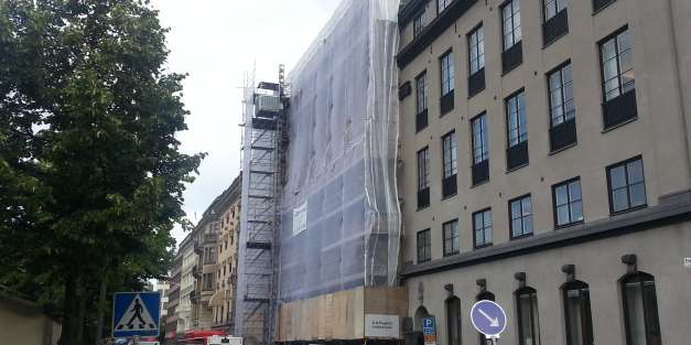 Renovering av balustrad i takterass, Rivning av bef räcke förläggning av nytt tätskikt och ny rostfri plåt. Underhållsarbeten på fasadens balkonger målade med linoljefärg