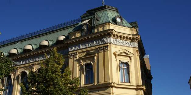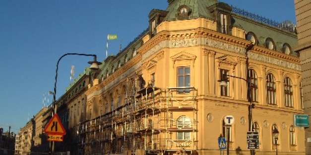 Uppfört 1875 för Jernkontoret, bildat 1747 för att främja svensk järnhantering. Arkitekt Axel Kumlien. Huset har sin förebild i fransk renässansarkitektur. Porträttmedaljongerna av svenska metallurger samt frisen med motiv från järnhanteringen är utförda av skulptören Frithiof Kjellberg. Huset byggdes om för Stockholms Enskilda Bank 1962-67, då de runda takkuporna tillkom. Arkitekt Peter Celsing.