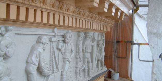 Färgborttagning, putsrenovering avfärgning med Gotlandskalk och linoljefärg samt fönstermålning