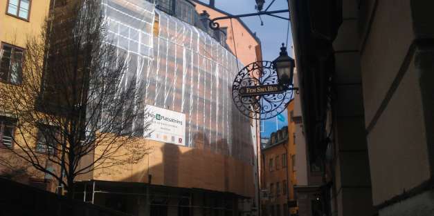 Borttagning av färgskikt genom blästring/fräsning, lagning av bomputs samt påförande av ett nytt skikt ca 5-7 mm kalkbruk. Avfärgning 5 gånger med Gotlandskalkfärg pigmenterad med järnvitriol. Renovering och ommålning av fönster.