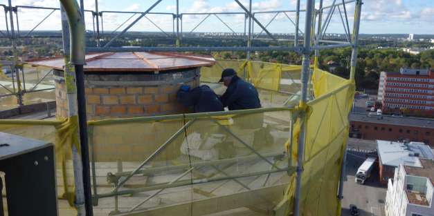 Mur och fogrenovering av hela skorstenen. Där vi även plockar ner och murar om med nytt tegel de övre 7,5 metrarna.
