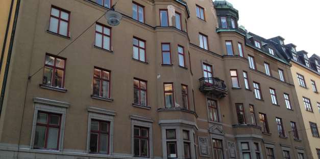 Putsrenovering och avfärgning med kalkimfärg, fönstermålning på fasader mot gata och gård