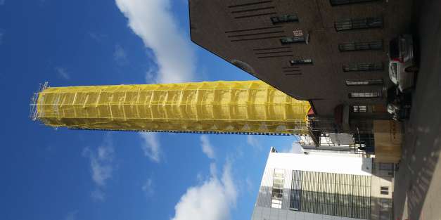 Mur och fogrenovering av hela skorstenen. Där vi även plockar ner och murar om med nytt tegel de övre 7,5 metrarna.