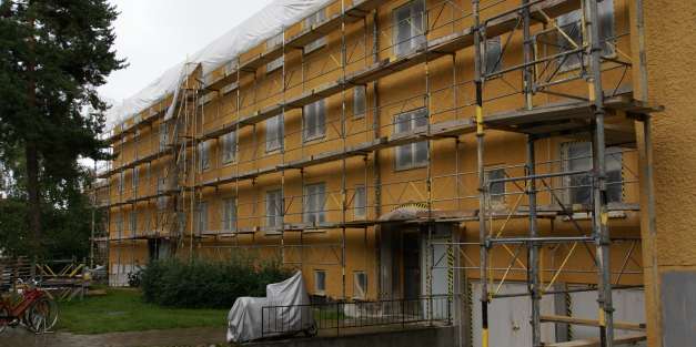 Omputsning av gårdsfasader, omgjutning av balkonger och fönstermålning