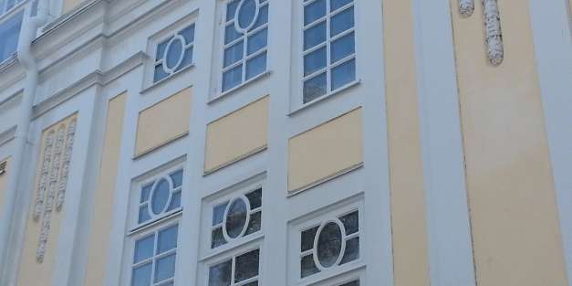 Ytavblästring av felaktig plastfärg, upplagning av underliggande kalkputs. Ny ytputs med luftkalkbruk som avfärgas med Kulturkalkfärg. All plåt och trä i fasad målas med oljefärg.